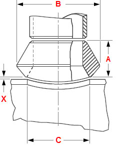Root Gap - X - "Space" for welding the O'let is raised off the run pipe to establish proper weld gap by placing spacers, e.g. welding rods, under the fitting. This provides a uniform welding gap between the curvature of the run and base of fitting.